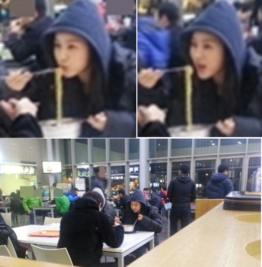 사진에는 김소은이 휴게소 식당에서 열심히 라면을 먹고 있는 모습이다.