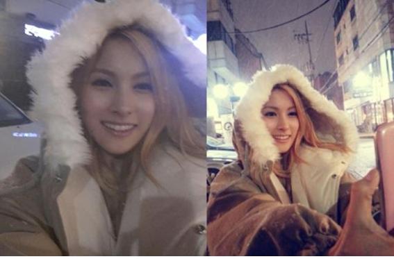 카라 박규리의 첫눈 셀카가 공개됐다.