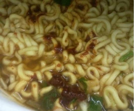 공개된 사진을 보면 끓인 라면 속 스프가 뭉쳐 있는 모습이다.