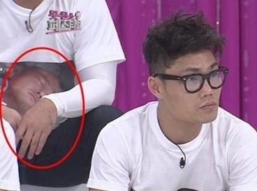 최근 온라인 커뮤니티 게시판에는 '방송중 김범수 뒤에 숨어서 자고 있는 길"이라는 제목의 게시물이 게재돼 누리꾼들의 이목을 사로잡고 있다.