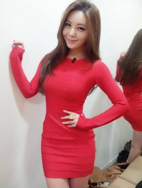 방송인 강예빈이 레드 원피스로 볼륨감 넘치는 몸매를 드러냈다.