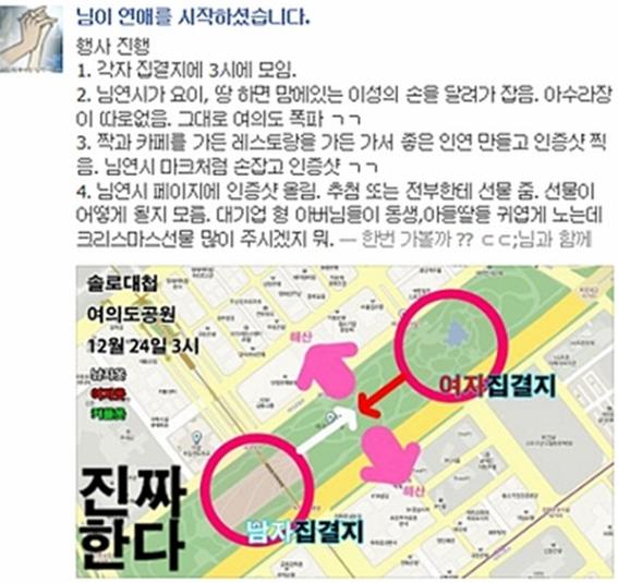 '솔로대첩'은 지난달 3일 '님이 연애를 시작하셨습니다(님연시)'라는 한 네티즌이 자신의 페이스북에 "솔로 형·누나·동생 분들. 크리스마스 때 대규모 미팅 한번 할까"라는 글을 쓰면서 시작됐다.