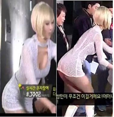 앞서 한송이는 화제가 된 tvN '화성인 바이러스'에서 입은 짧은 원피스를 입고 '세얼간이'에 출연해 게임을 하다 속옷 노출 논란을 일으켰다. (사진-tvN)