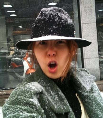 공개된 '김나영 박대기 패러디' 사진 속 김나영은 모자, 옷에 눈을 잔뜩 맞은 채 절규하는 표정을 짓고 있다.