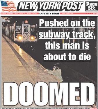 뉴욕포스트의 이 같은 1면을 촬영해 제공한 사람 프리랜서 기자 우마 압바시는 "뉴욕 지하철 한인 사고를 목격하고 기관사에게 경고하기 위해 플래시를 터뜨린 것"이라고 해명했다.
