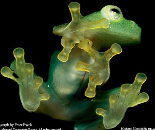 한편, 1872년에 처음 발견된 유리 개구리는 중남미의 습한 산악지대에서 살고 있지만 발견하기가 매우 어렵다.