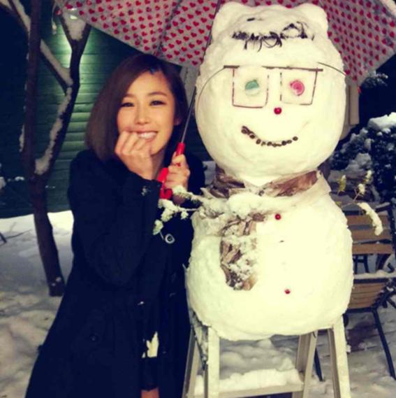 이와 함께 공개한 사진에서 전효성은 눈사람과 함께 우산을 쓰고 다정하게 사진을 찍고 있다.