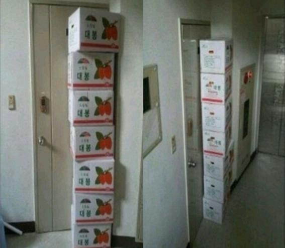 특히 이 쌓아놓은 박스들은 현관문을 막고 있어 웃음을 자아냈다.