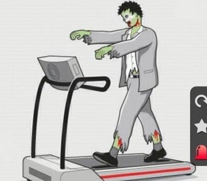 지능이 없는 좀비가 런닝머신에서 내려올 수 없어 '좀비 가두는 기계'란 제목이 붙여 보는 이들의 웃음을 자아냈다.
