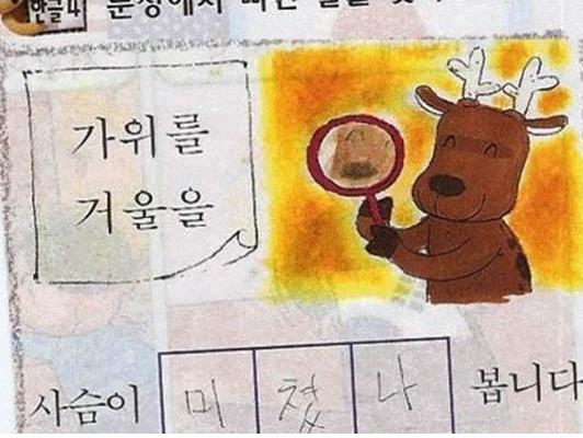 그러나 이 초등학생은 보기에 있는 답 대신 ‘미쳤나’라는 단어를 집어 넣어 '사슴이 미쳤나 봅니다'라는 문장을 완성해 웃음을 자아냈다.