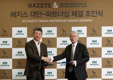 LG패션은 7일 오후 서울 압구정동 본사에서 대만 최대 패션 기업인 먼신 가먼트(Munsin Garment)그룹과 헤지스 브랜드의 대만 독점 수출 계약을 체결했다고 9일 밝혔다. 헤지스의 대만 진출은 국내 패션 브랜드 중 처음이라고 회사 측은 설명했다.