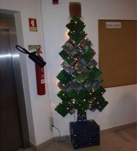 공개된 사진에는 공대 기숙사에 세워 놓은 트리로 컴퓨터나 기계 부품인 메인보드를 연결시켜 놓아 눈길을 끈다.