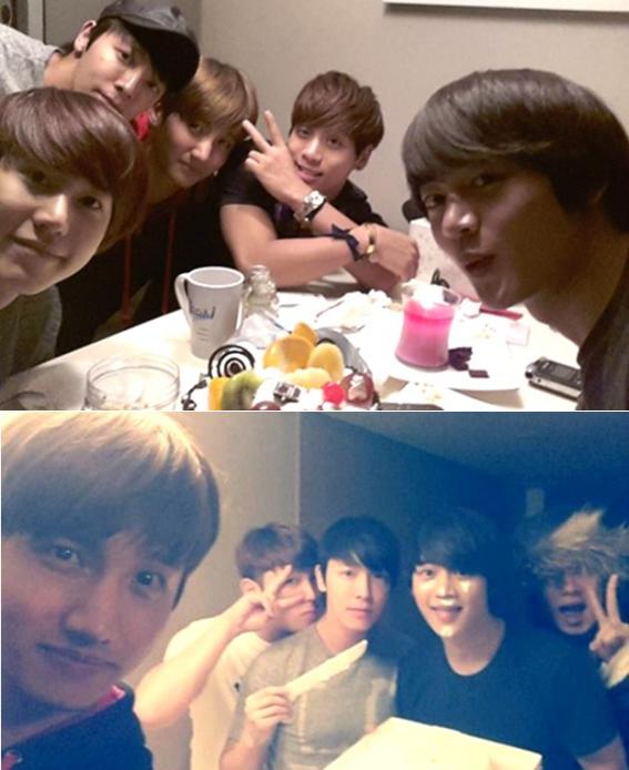 민호 생일파티 사진에 네티즌들은 "훈남들 다 모였네", "훈훈한 생일파티", "나도 껴줘요"등의 반응을 보였다. (민호 생일파티/ 사진-규현, 동해 트위터)