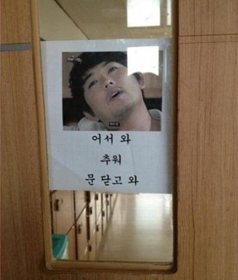 최근 인터넷에 공개된 '흔한 어느 교실 뒷문’ 게시물에는 한 학교의 교실 뒷문에 재미있는 문구와 사진이 붙어 있다.