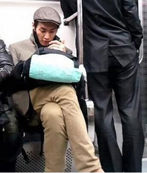 게재된 사진 속 김영광은 지하철에 앉아 휴대폰을 만지작거리고 있다.