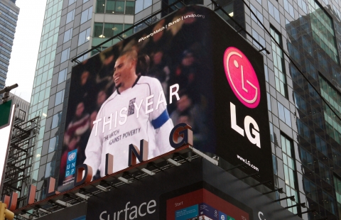 이에 따라 타임스스퀘어 전광판을 통해 유엔개발계획이 개최하는 ‘빈곤퇴치 자선 축구 경기 2012’ 영상을 하루 60회 상영된다. 뉴욕 타임스스퀘어는 하루 유동인구가 약 150만 명에 달하는 관광 명소다.