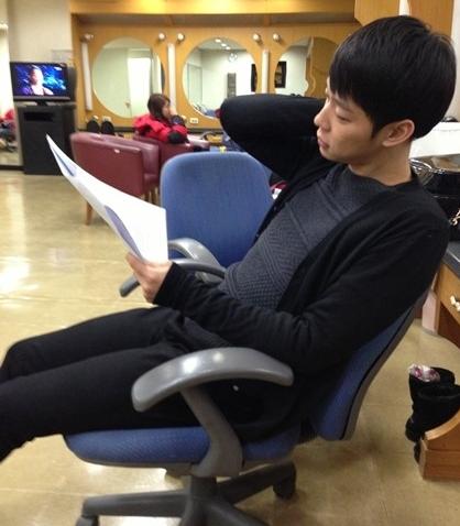 사진 속에은 박유천이 대기실에서 대본을 읽는 모습이 담겨 있다.