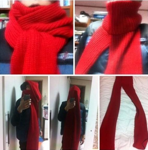 그러나 이 목도리를 자세히 보면 특이한 모양을 하고 있어 마치 바지를 두른 것 같은 모습이 폭소를 자아냈다.