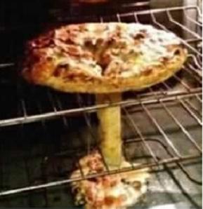 특히 피자 폭발 사진을 살펴보면 오븐에서 열을 이기지 못하고 폭발해 치즈가 아래로 떨어진 모습이 마치 핵 폭발 모습과 흡사해 웃음을 자아낸다.