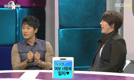 이어 "장동건 씨는 알지 모르겠으나 고소영 씨에게 '여보, 사랑해'라고 문자메시지를 보냈다"고 고백했다. 이성재 고소영 문자 소식을 접한 누리꾼들은 "이성재 프로네", "고소영은 답문했나?" 등의 반응을 보였다.(이성재 고소영 문자 / 사진-MBC)