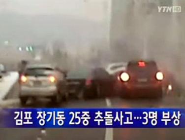 출근시간대에 김포서 25중 추돌사고가 일어나 교통에 혼잡이 일었다.