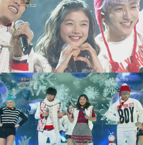 아역배우 김유정과 그룹 B1A4가 깜찍한 커플댄스를 선보여 화제다.
