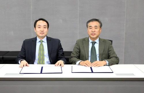 <녹십자 종합연구소 최순규 이사(좌)와 범부처신약개발사업단 이동호 단장(우)>