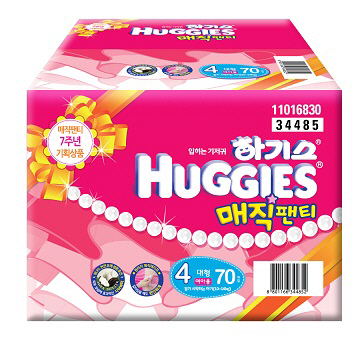 매직팬티는 전국 이마트, 롯데마트, 하기스몰 등을 통해 약 두달 동안 구입할 수 있는 한정제품으로 대형(10~14kg) 및 특대형(13~18kg)으로 구성돼 있으며, 대형 70개입, 특대형 58개입으로 가격은 기존 제품과 동일하다.