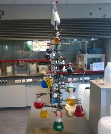 화학 전공 대학생다운 아이디어가 보는 이들을 웃음 짓게 한다. 화학 전공 대학생의 트리는 네덜란드 한 대학교 화학 실험실에서 직접 제작된 것으로 알려졌다.