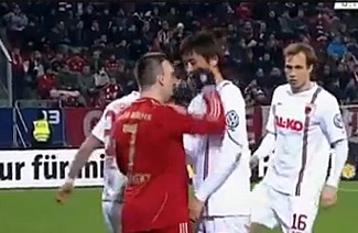 얼굴을 맞대고 신경전을 벌이던 찰나 구자철이 상대 왼쪽 뺨을 살짝 건드렸고 리베리가 오른손으로 구자철의 안면을 가격한 것.