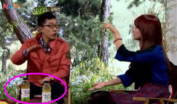 반면 K팝스타나 힐링캠프와 같은 예능프로그램은 고정된 자리에서 대화를 지속하기 때문에 출연진 앞에 음료가 있는 게 자연스러워 이런 논란을 피해갈 수 있다.