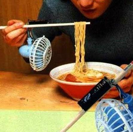 이 ‘라면 먹기 도우미’ 사진을 접한 누리꾼들은 "라면 먹기 도우미 좋은 아이디어네", "젓가락이 좀 무겁겠다", "선풍기 더 작아야 할 듯"등의 반응을 보였다. (사진-온라인 커뮤니티)