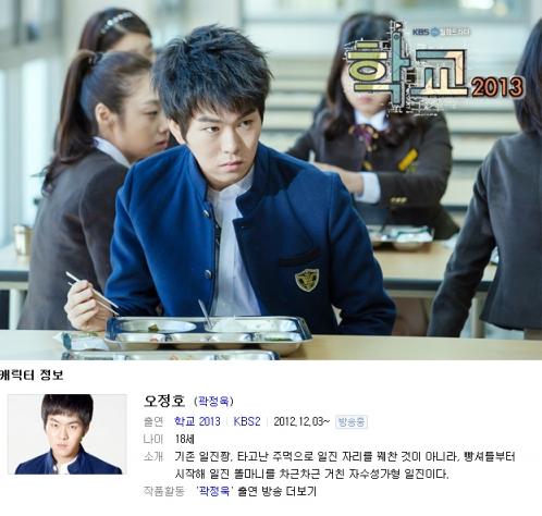 사진 속에는 최근 방영 중인 KBS2 '학교 2013'의 주인공 오정호(곽정욱 분)에 대한 인물소개가 나와 있는데 역대 '드라마 캐릭터 무리수'라고 소개되고 있는 것.