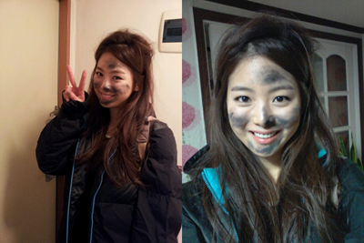 공개된 사진 속에서 한지우는 헝클어진 머리에 검은 칠을 한 얼굴로 'V'자를 그리며 카메라를 향해 해맑게 웃고 있다.