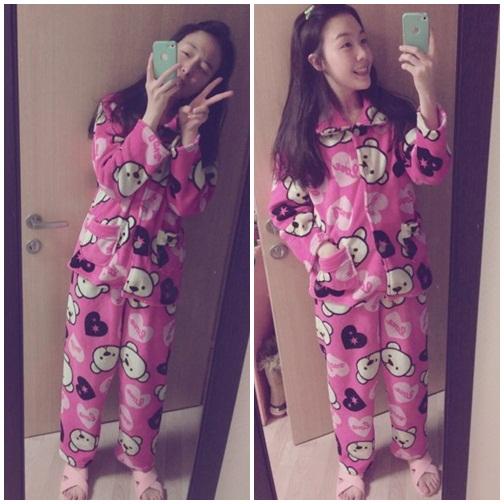 사진 속 민아는 화장기 없는 얼굴에 곰돌이가 그려진 핑크색 잠옷을 입고 귀여움을 물씬 풍겼다.