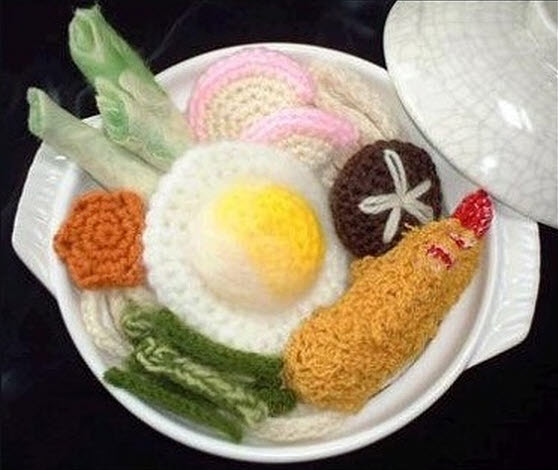 공개된 ‘어머니 뜨개질 만렙 2탄’ 사진 속에는 먹음직스럽게 보이는 계란후라이와 새우튀김, 야채 등이 쟁반에 있다. 하지만 자세히 보면 이 음식들은 뜨개질을 이용해 정교하게 만든 가짜음식이다.