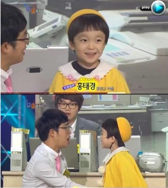 지난 23일 방송된 KBS 2TV ‘개그콘서트-갑을컴퍼니’에는 노란 옷을 입은 홍태경 군이 나와 연기를 펼쳤다.