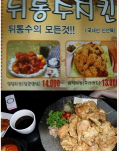 게시물에는 '뒤통수치킨'이라고 적힌 전단지에 치킨과 간장 그릇의 모습이 담겨있다.