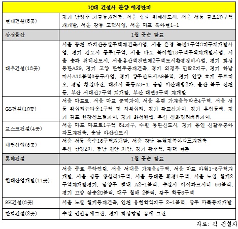이 밖에 GS건설(7천600가구), 롯데건설(7천400가구), 현대건설(6천533가구), SK건설(4천900가구), 한화건설(4천300가구), 포스코건설(3천500가구) 순으로 분양물량이 예정돼 있다.