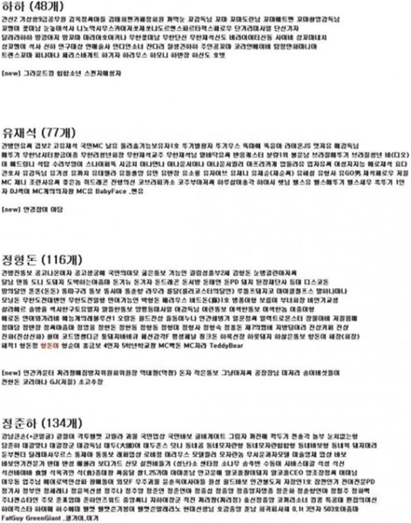 최근 각종 온라인 커뮤니티 게시판에는 '무한도전 별명 정리'라는 제목으로 게시물이 공개됐다.