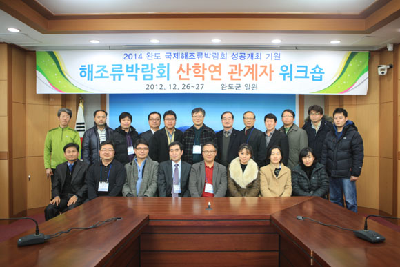 완도군(군수 김종식)은 '2014 완도국제해조류박람회'의 성공개최를 기원하는 해조류박람회 산학연 관계자 워크숍을 지난 26일부터 27일까지 1박2일간 실시했다.