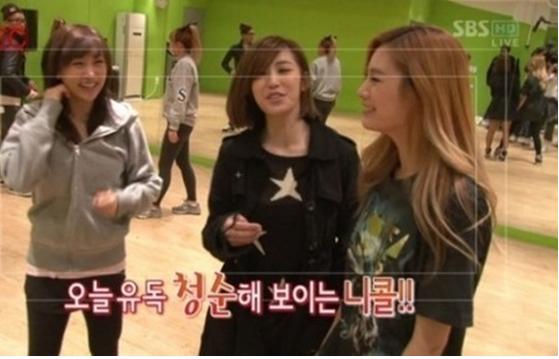 이 사진에서 카라의 니콜, 시크릿의 효성, 애프터스쿨 나나가 밝게 웃고 있는 모습이다.