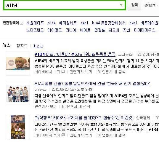 '기자도 헷갈린 아이돌' 게시물에는 아이돌 그룹 'B1A4'를 포털사이트에서 검색한 캡쳐 화면이 올라와있고 바로 밑에 이와 유사한 이름인 'A1B4'와 'A4B1'으로 잘못 검색한 캡쳐 화면까지 올라와있다.