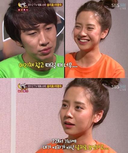 그러자 송지효는 "그래서 네가 인터뷰에서 내가 여자가 아닌 남자로 보인다고 말했구나"라고 말해 웃음을 자아냈다.