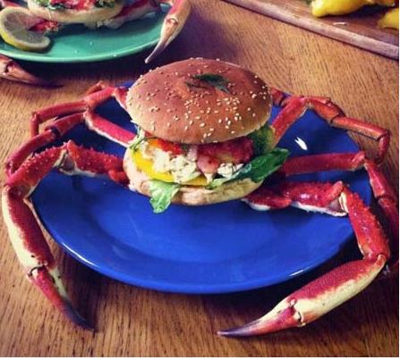 공개된 '대게 한마리 통째 버거' 사진에는 빵 사이에 대게 한마리가 패티로 들어가 있는 모습이 담겨 있다.