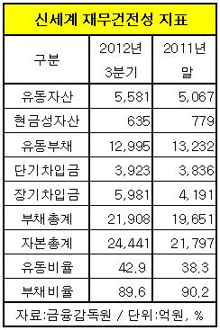 부채비율은 롯데쇼핑과 비슷하지만 현금자산과 자금유동성면에서는 훨씬 뒤떨어지는 상황이다.