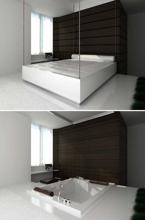 욕실로 변하는 침실 사진이 누리꾼들의 눈길을 끌고 있다.