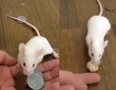 영상 속 쥐는 주인으로부터 과자를 얻기 위해 바닥에 놓인 동전을 하나 씩 주인의 손바닥에 옮겨 보는 이들로 하여금 놀라게 했다.