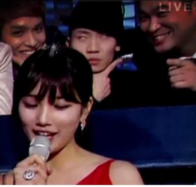 이 사진에는 힙합그룹 다이나믹 듀오 개코가 이날 열린 '2012 SBS 가요대전'에서 MC를 보고 있는 수지 뒤에서 눈의 흰자를 드러내며 엽기적인 표정을 하고 있는 모습이 담겨 있다.