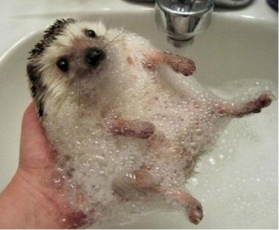 거품 목욕하고 있는 고슴도치의 동영상이 화제다.